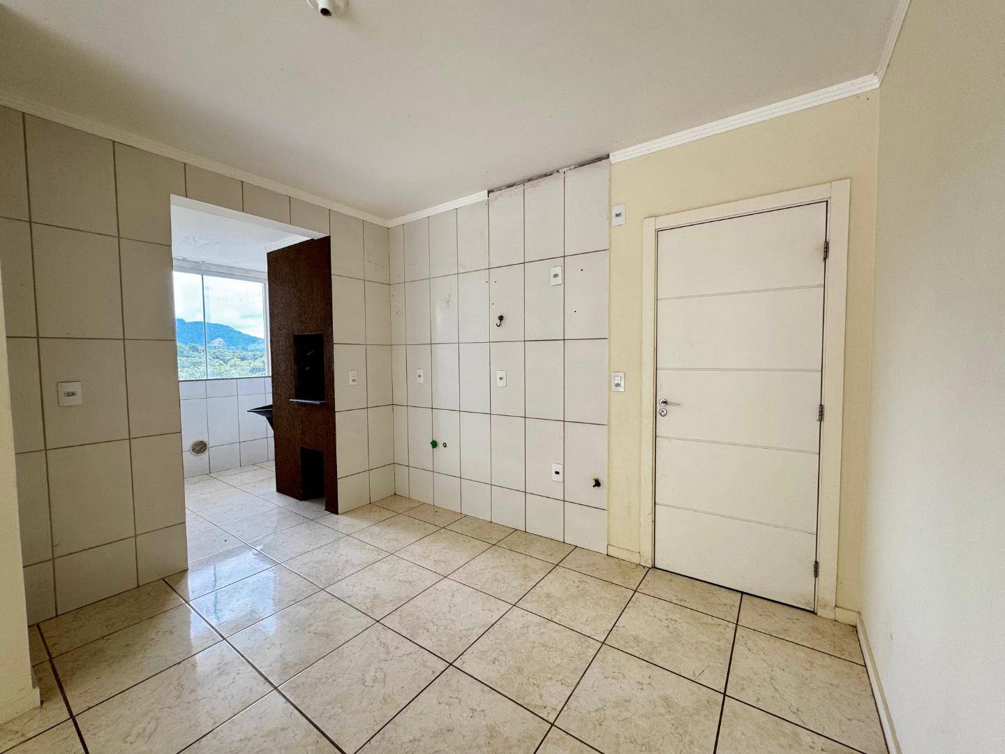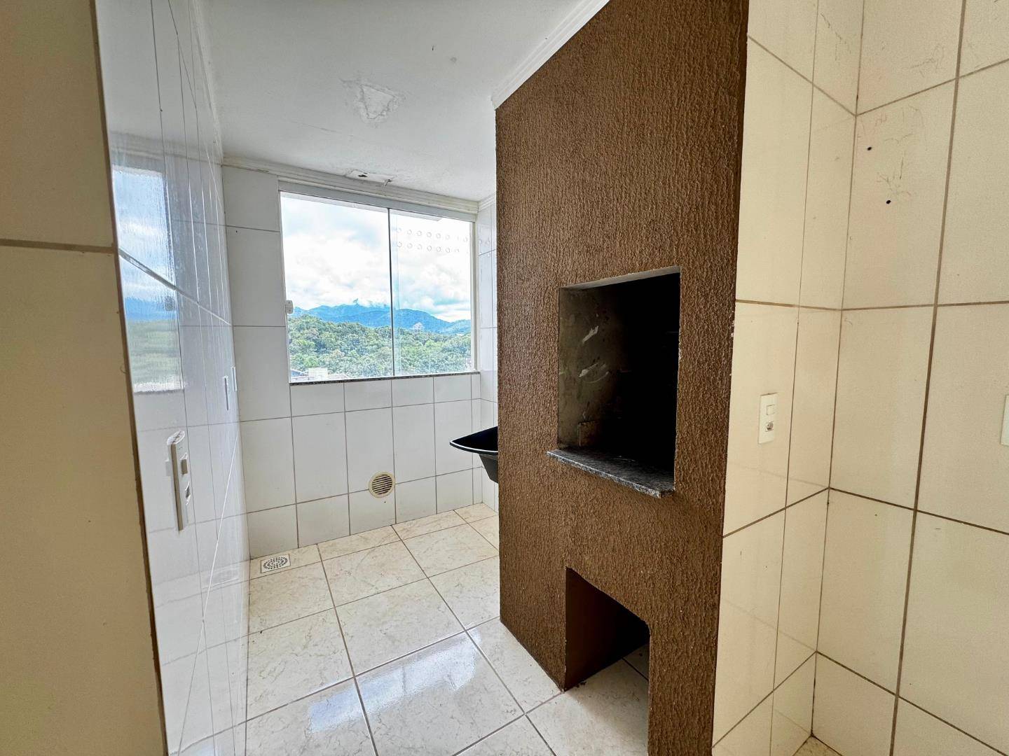 Este apartamento possui um amplo living integrado, perfeito para receber amigos e familiares com conforto. Conta com dois banheiros e uma churrasqueira a carvão, ideal para momentos de lazer e confraternização.