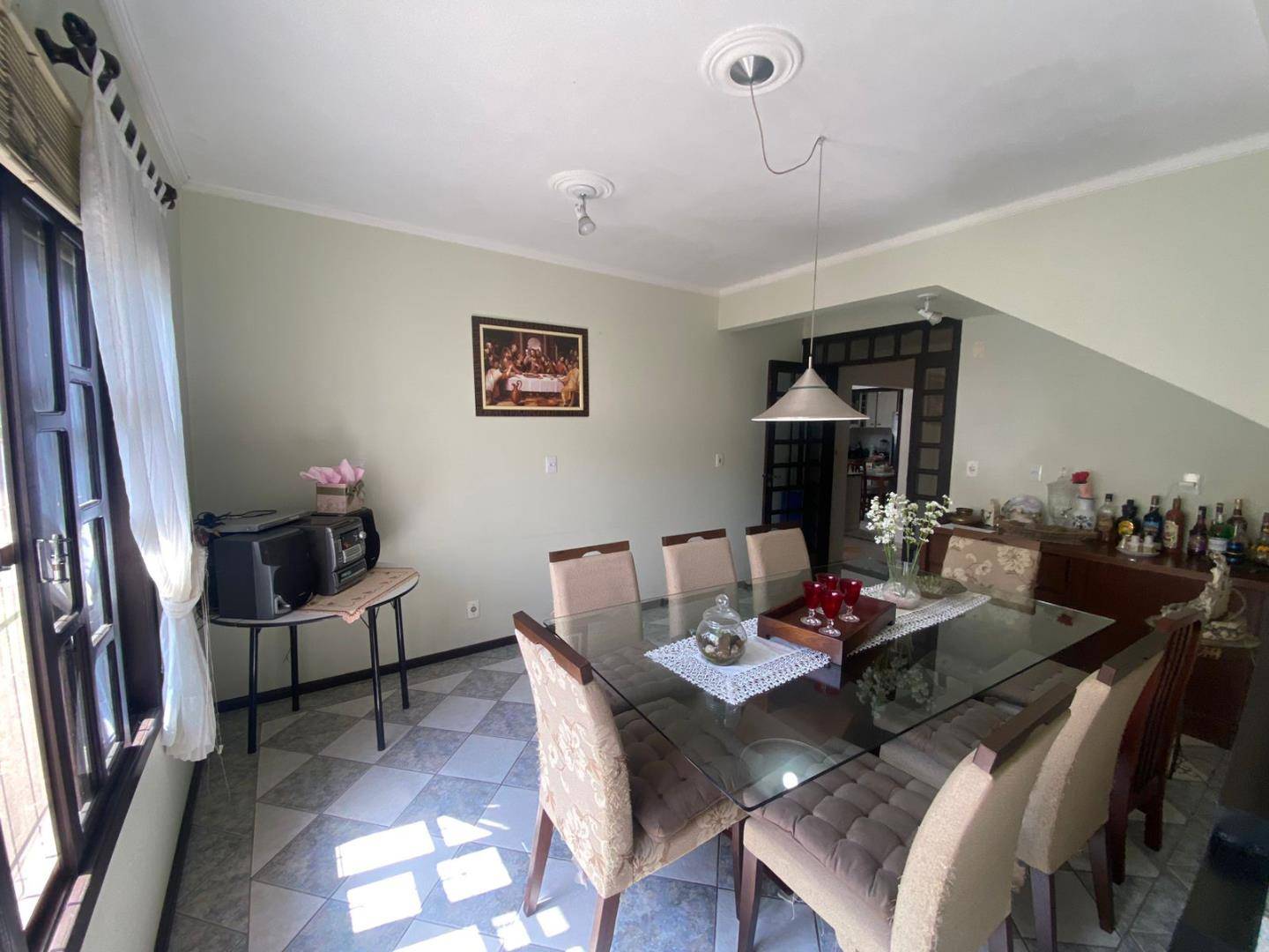 01 suíte, 2 quartos, sala de estar, sala de jantar, bwc, lavabo, cozinha, lavanderia, depósito, churrasqueira, garagem para 02 carros.