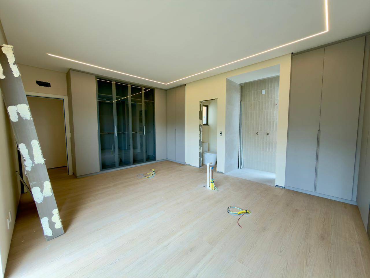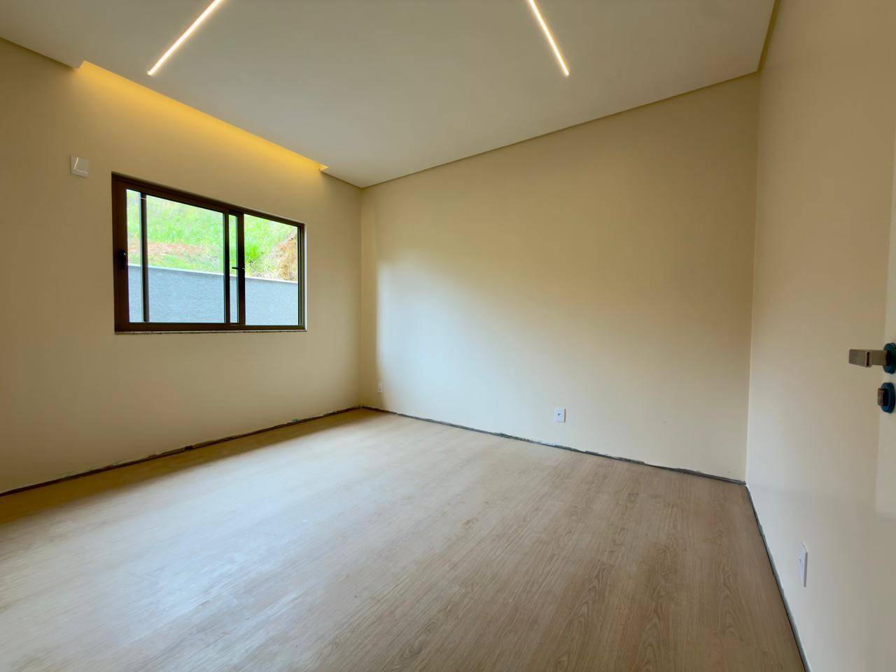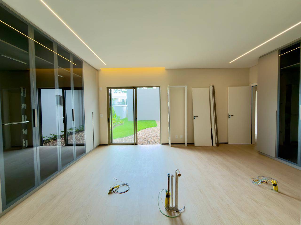 1 suíte com móveis planejados e vista para o jardim