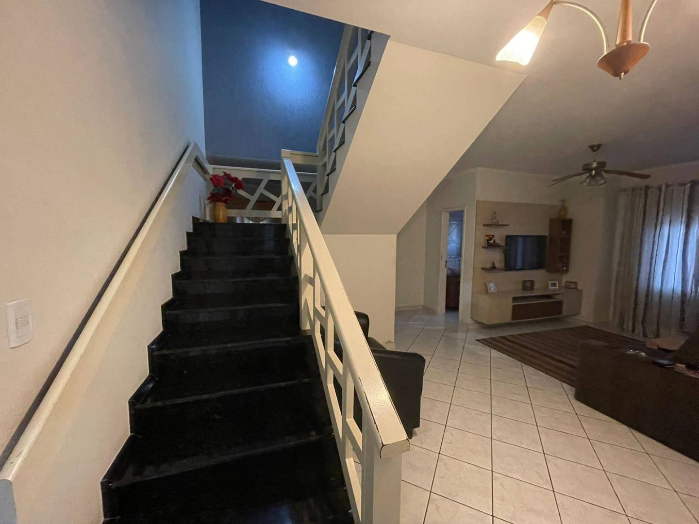 01 suíte com hidro, 03 dormitórios, sala de estar, sala de Tv, copa, cozinha, 02 lavabos, 01 banheiro, escritório, área de festas com churrasqueira, 02 vagas de garagem lado a lado . Móveis planejados, aquecimento solar.