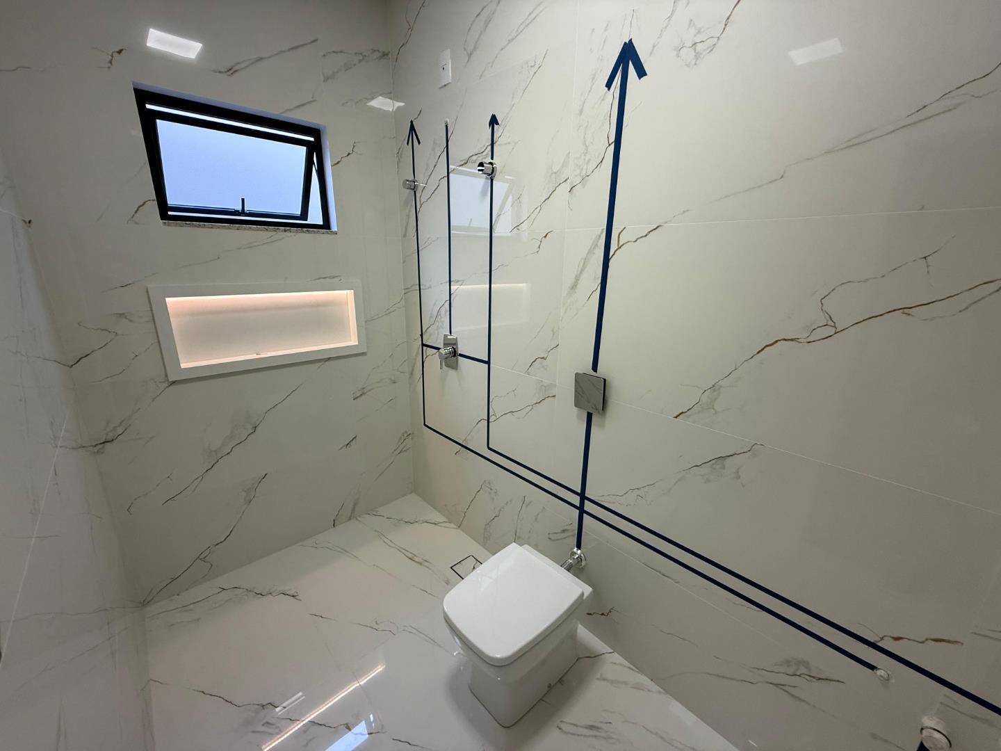 Nicho iluminado e com borda nos banheiros