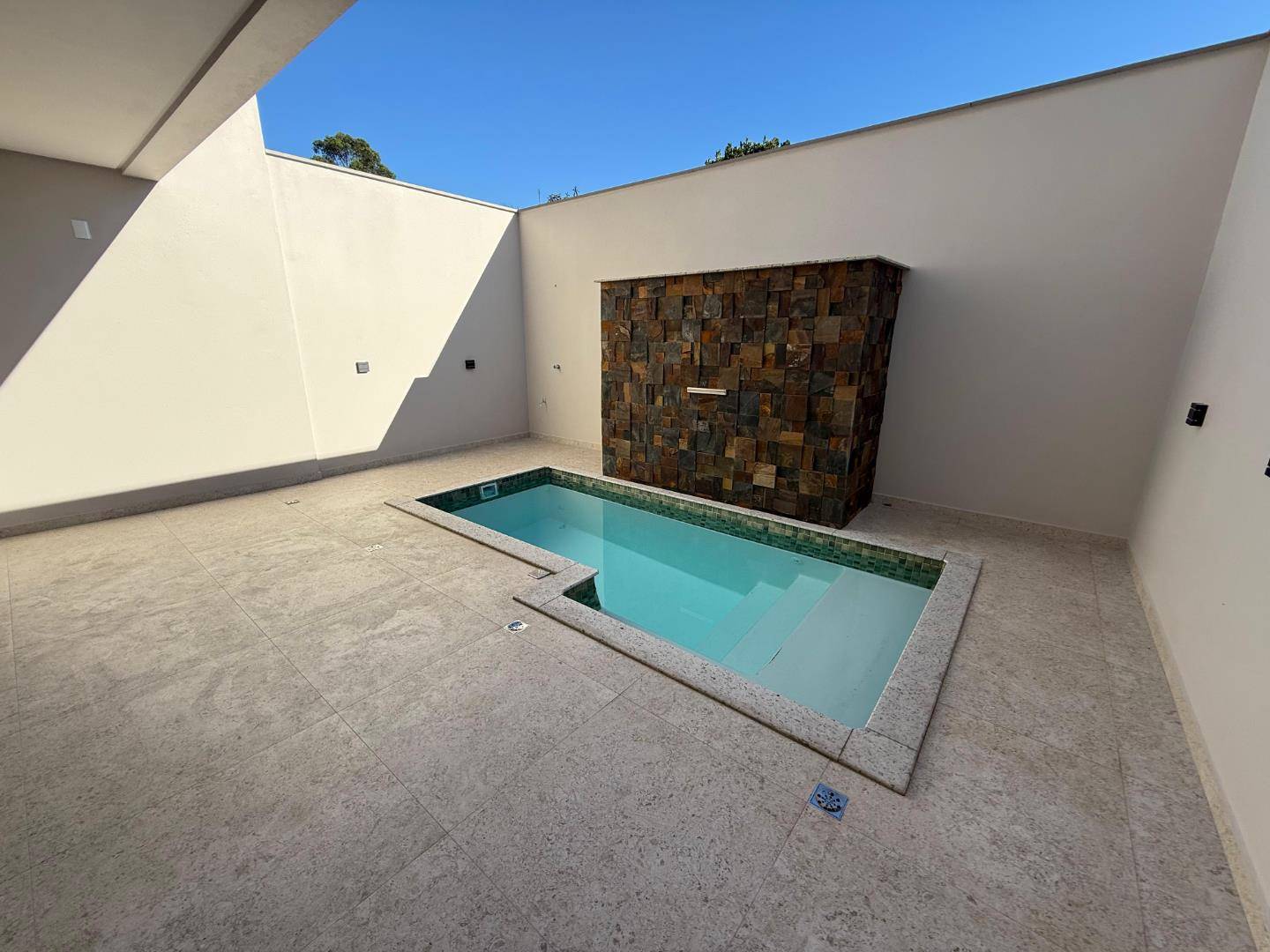 Piscina Retangular de Fibra nos Fundos com led, cascata, e hidromassagem .