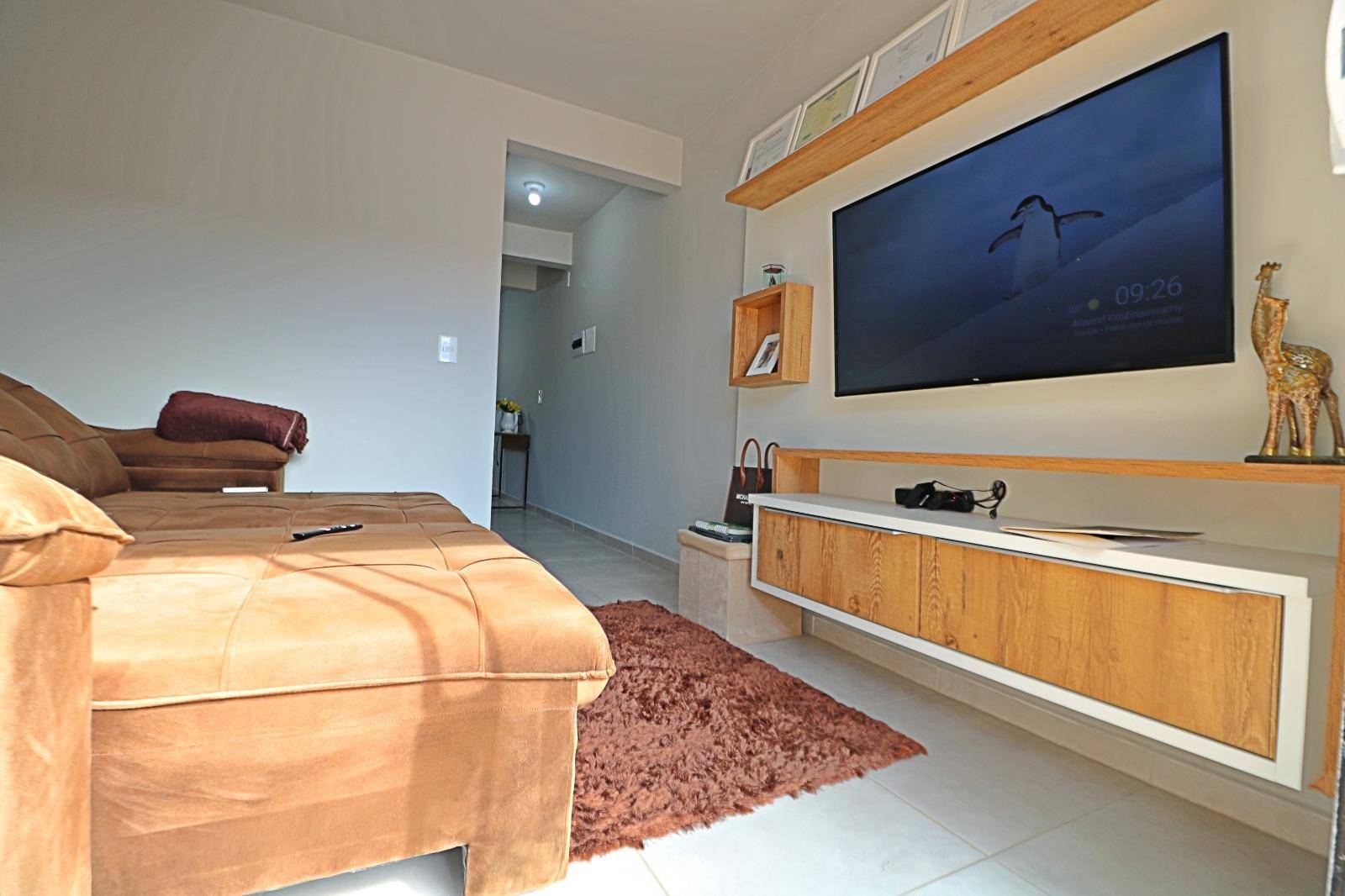 Possui 2 quartos, no principal possuí sacada ecom guarda roupa sob medida, cozinha com moveis sob medida, sala com painel de TV, lavanderia com moveis sob medida, área gourmet coberta com churrasqueira e vaga estacionamento para 2 carros, banheiro social + lavabo.