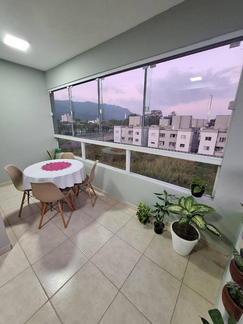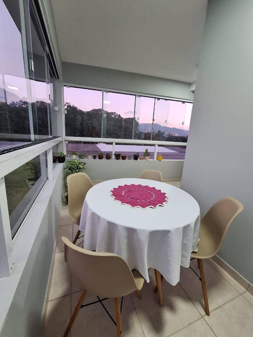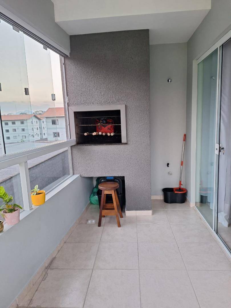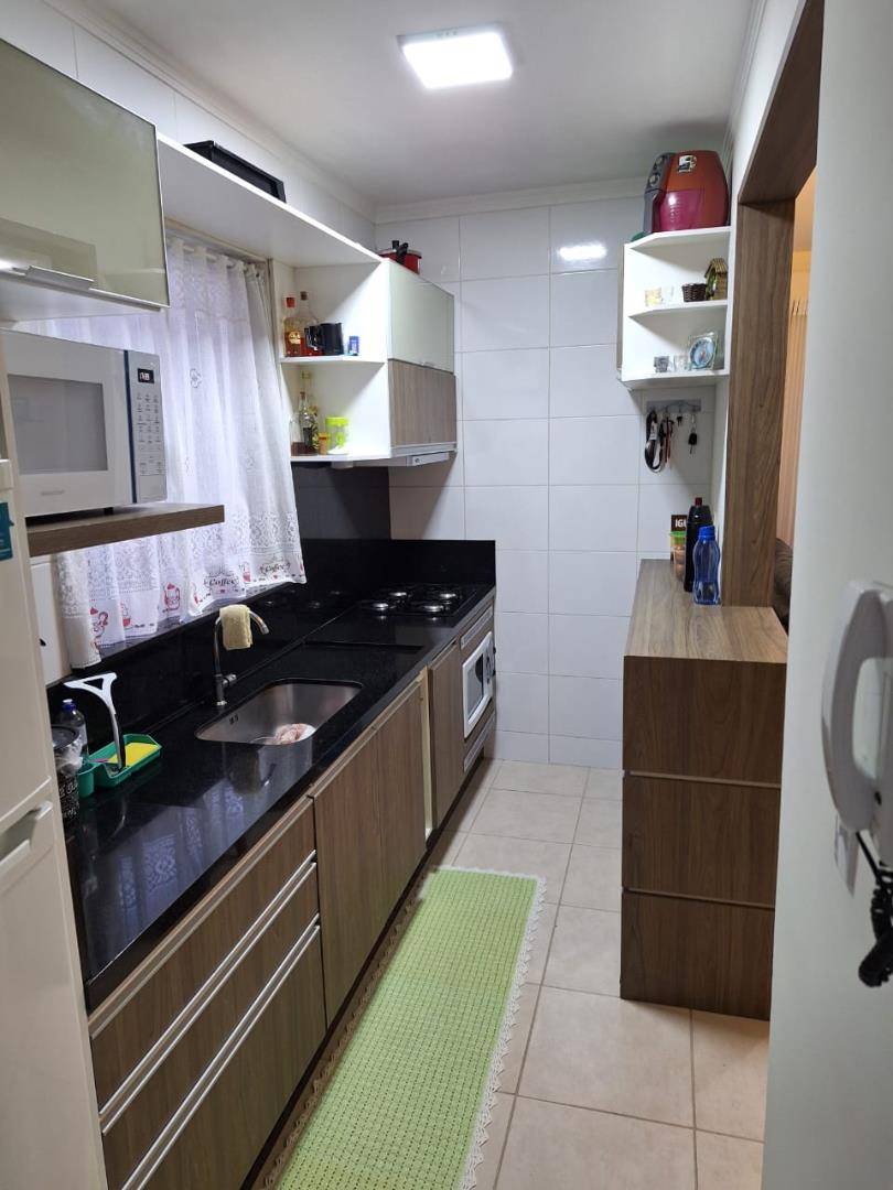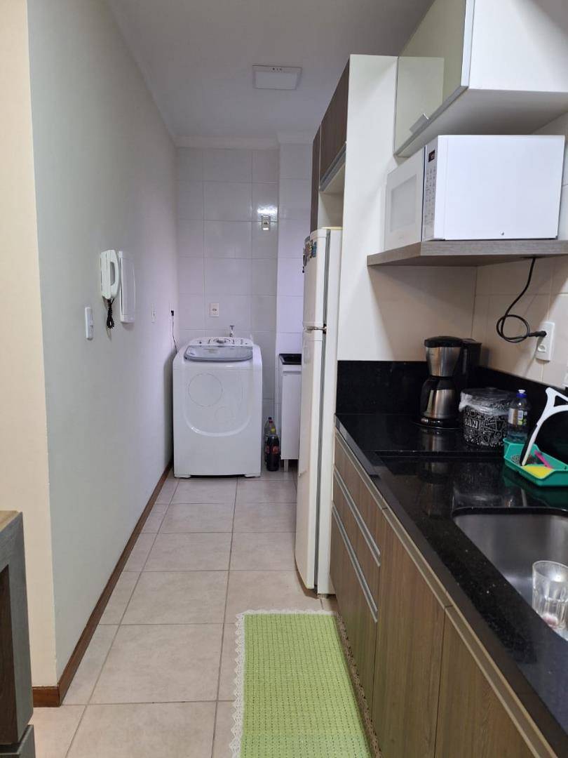 01 suíte, 01 quarto, sala de estar, sala de jantar, banheiro, lavanderia, cozinha, sacada com churrasqueira e vaga de garagem.