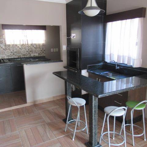 03 quartos, sala de estar, sala de jantar, cozinha, lavanderia, 02 banheiros, área com churrasqueira, garagem.